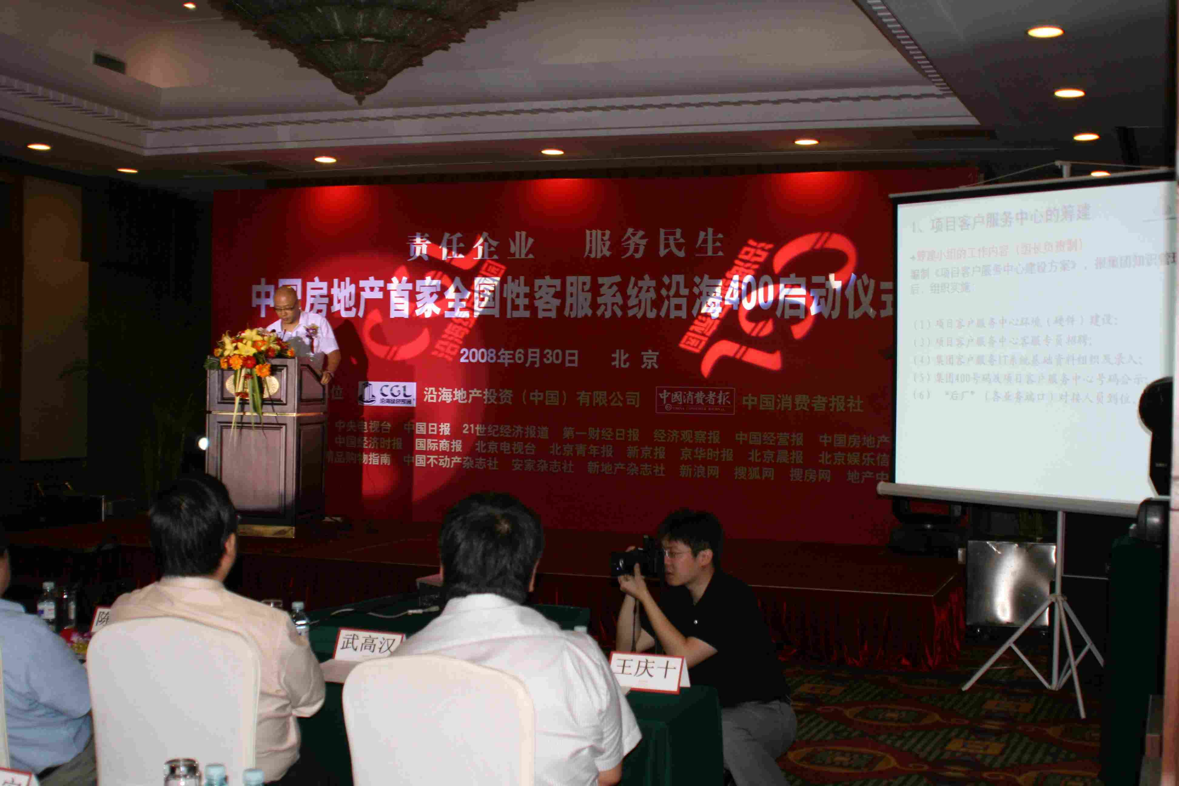 6月30日下午,在“責任企業,服務民生——中國房地產首家全國性客服系統沿海400啟動儀式”上國家工商行政管理總局消費者權益保護局李曉清處長、住房和城鄉建設部政策研究室主任陳淮、全國工商聯房地產商會會長聶梅生、中國消費者協會副秘書長武高漢、中國房地產業協會副會長兼秘書長朱中一、中國消費者報社社會王慶十、中國消費者協會律師團團長邱寶昌等相關部門的領導、學者與沿海地產集團副 總裁成實等共同正式啟動了沿海集團400全國服務中心,一并見證了中國房地產行業極具意義的時刻!