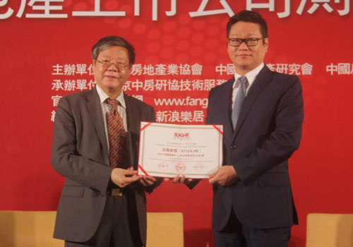 由中國房地產業協會、中國房地產研究會、中國房地產測評中心聯合推出的《2015中國房地產上市公司測評研究報告》,于5月28日在香港麗思卡爾頓酒店盛大發布,2015中國房地產上市公司100強排行榜正式出爐。沿海綠色家園集團去年的發展獲得評委們一致認可,連續第四年榮登該榜單的50強,張亞峰副總裁應邀出席了發布會并上臺領獎。