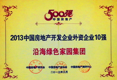 沿海集團作為一家港資綜合性投資控股公司, 成立23年來廣泛地投資于中國境內的產業投資、金融、地產開發、運營服務與工程管理、健康住宅技術和能源開發與管理等不同產業,且在房地產價值鏈整合、商業模式與企業治理等方面屢有創新。基于此,本次大會還授予沿海綠色家園集團“2013年中國房地產開發企業創新能力10強”和“2013年中國房地產開發企業外資企業10強”兩大榮譽。