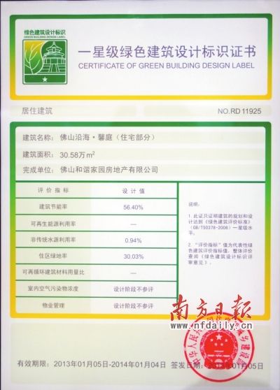 到目前為止,佛山已有多個住宅小區被認定為“廣東省綠色住區”,而國家級別的綠色社區,則僅只有沿海馨庭一個。據悉,廣東省房地產業界對住宅建設的環保節能問題重視較早,省房協自2002年就開展了“廣東省綠色住區”考評認定活動,提倡使用環保型建筑材料、清潔型生活能源,提倡住宅功能向智能化轉向、資源消耗向循環經濟過渡,提倡豐富住宅及其環境的文化藝術含量,提倡節地、節水、節能、治污等。