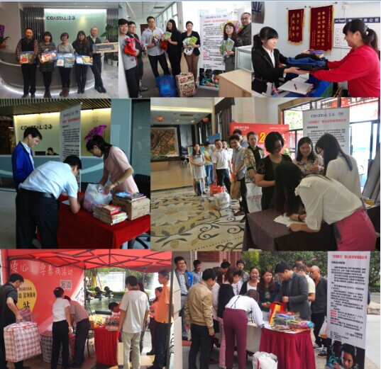 自10月9日起,從位于東北的哈爾濱、沈陽(yáng)、鞍山、大連到首都北京,從長(zhǎng)江上游的重慶順江而下到武漢、上海,再到南方的廈門、東莞、佛山、深圳,有沿海綠色家園集團(tuán)足跡的地方,愛(ài)心就不停地在傳遞、聚集,一件件干凈的衣服、一個(gè)個(gè)簇新的文具,還有豐富多樣的體育用品,當(dāng)然少不了孩子們最喜歡的課外書(shū)籍……它們從千百雙手中遞過(guò)來(lái),積少成多、聚沙成塔。不同的是物件,相同的是愛(ài)心。
